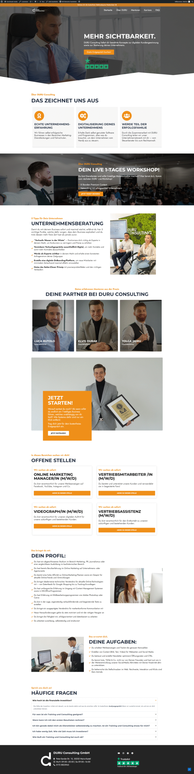 Die Kosten hängen stark vom Umfang und den spezifischen Anforderungen des Projekts ab. Wir finden für jedes Budget eine passende Lösung und beraten individuell, um ein Angebot zu erstellen, das zu den Zielen und Möglichkeiten des Kunden passt. Am besten nehmen Sie direkt Kontakt mit uns auf – so können wir gemeinsam den passenden Rahmen definieren.